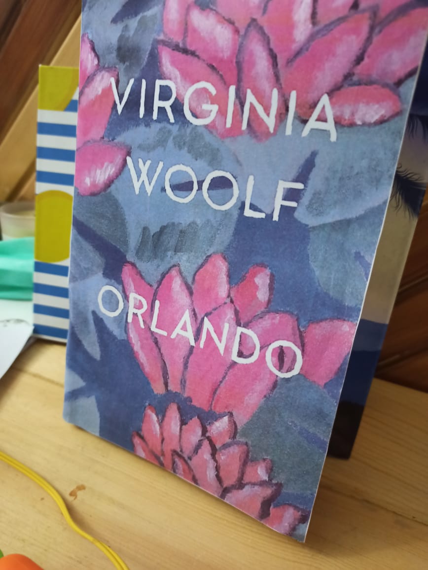 We had first set up the room and added some elements that went with our music video. The main elements in our mise en scene included movie posters for Flight Plan and Portrait of a Lady on Fire, and the Virginia Woolf "novel" Orlando, which we placed on the bedside table.